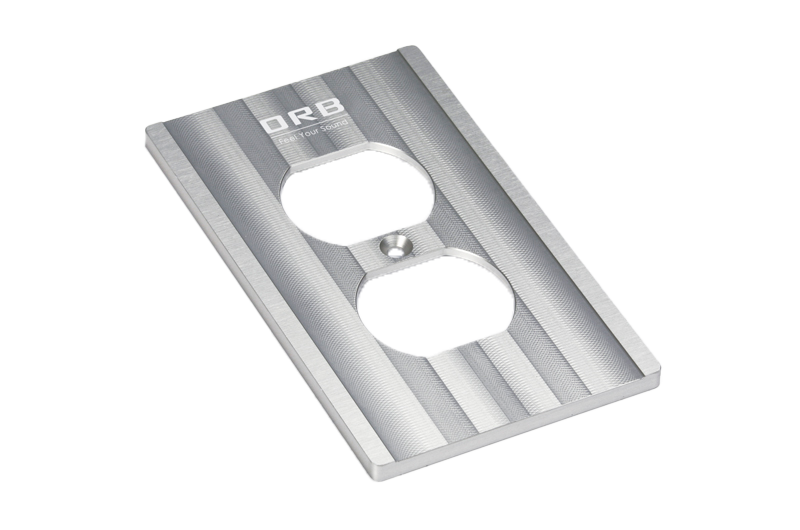 CF-CPは、5mm厚の削り出しアルミニウム合金にORB独自の美しい表面加工を施した2口タイプのコンセントプレートです。