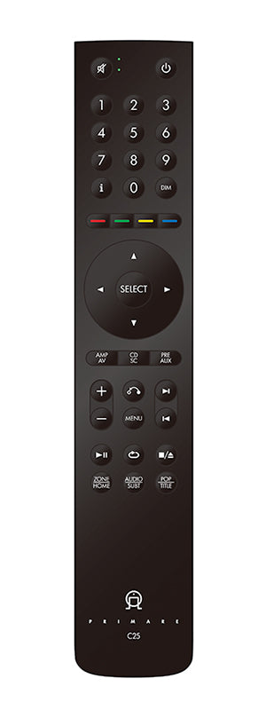 付属するC25リモート・コントローラーは独自の制御コードをもっており、応答性にすぐれ、正確に機器の方へ向けなくてもコントロールが可能な使い勝手の良さを実現しています。 |